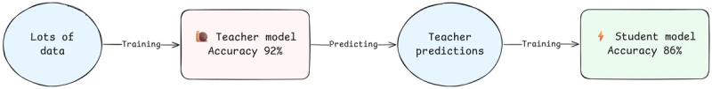 Het leerkracht-model werd getraind door te leren uit grote hoeveelheden data. Het student-model daarentegen, wordt enkel getraind wordt op de output van een (reeds getraind) leerkracht-model en komt eigenlijk nooit in aanraking met de oorspronkelijke data.