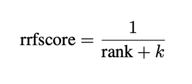 A commonly used method for reranking is Reciprocal Rank Fusion (RRF), which assigns a score based on ranking position: