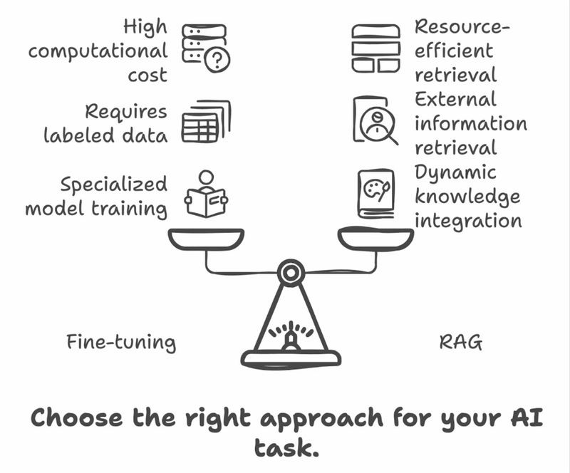 The figure in the attachment about "Combine fine-tuning and RAG" shows that each technique has its strengths. Therefore, it is best to combine them as follows: