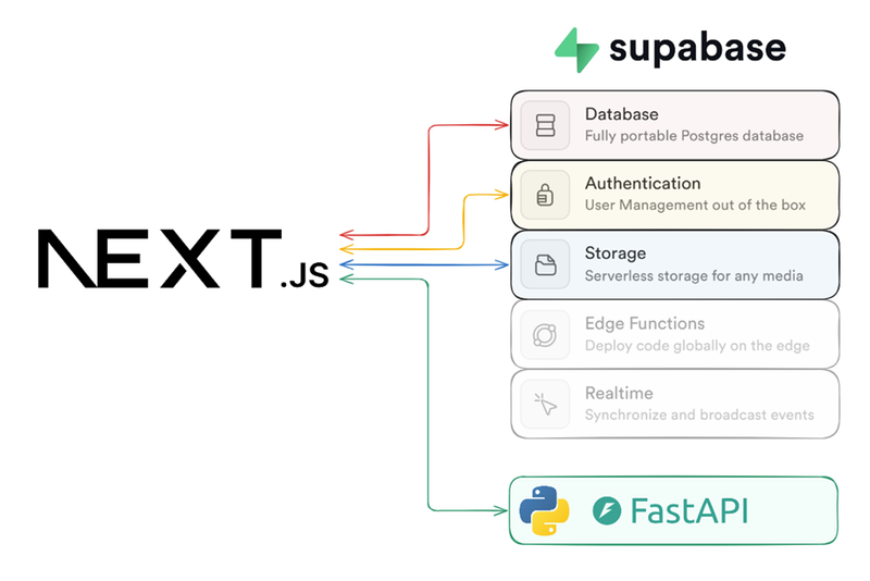 De website is gebouwd met Next.js, een modern React framework dat server-side rendering ondersteund. Voor de backend gebruiken we Supabase, een open-source alternatief voor Firebase die een oplossing biedt voor: