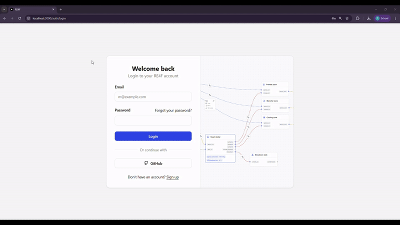 Na het inloggen in de applicatie krijgt de gebruiker een overzicht van al zijn projecten te zien. Elk project bestaat uit een blokschema, waarbij elke blok een procesonderdeel (machine, tank, …) voorstelt. De verbindingen tussen blokken stellen de buizen voor waar vloeistoffen door gepompt worden.